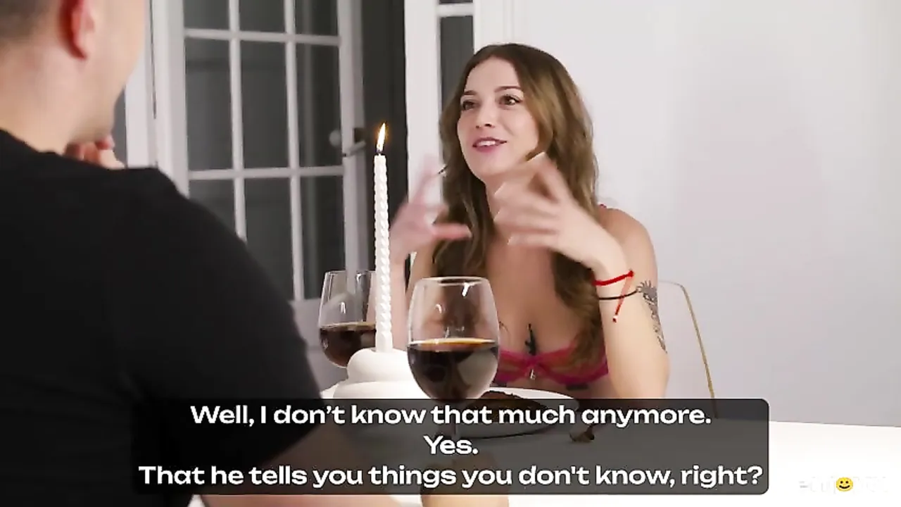 Una entrevista muy especial que simula ser una cena romántica entre amigos. Con velas y vino. Después de escuchar las respuestas de la guapa Agatha Shay podemos ver cómo abre las piernas y folla. Qué mujer !!