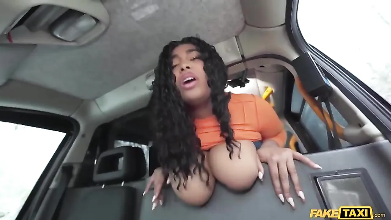 Colombiana viciosa de pelo rizado y tetazas se deja follar por el taxista