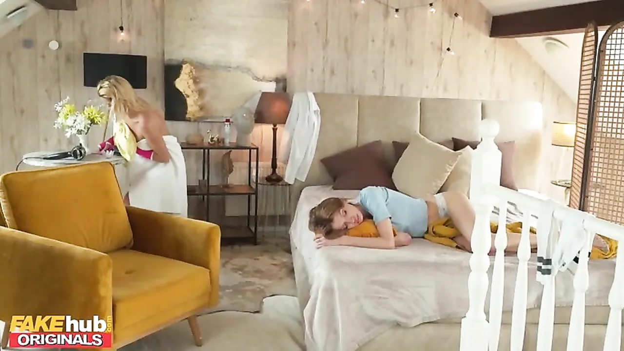 This girl has been harboring bisexual fantasies for a while and wanting to try fucking another woman. Despite having a boyfriend, she hasn't told anyone about this fantasy. On top of that, her roommate is a lesbian, and seeing her naked the other day made him want to caress her hairy pussy...
