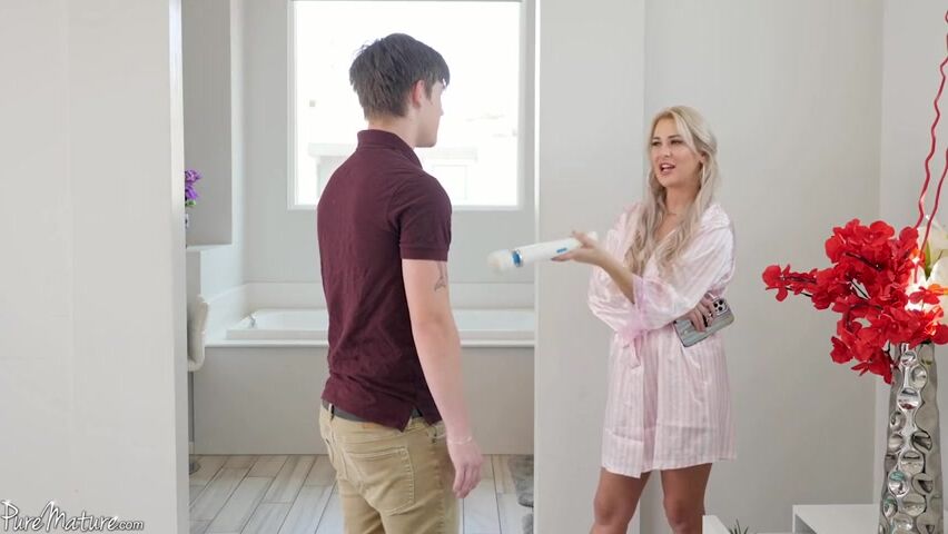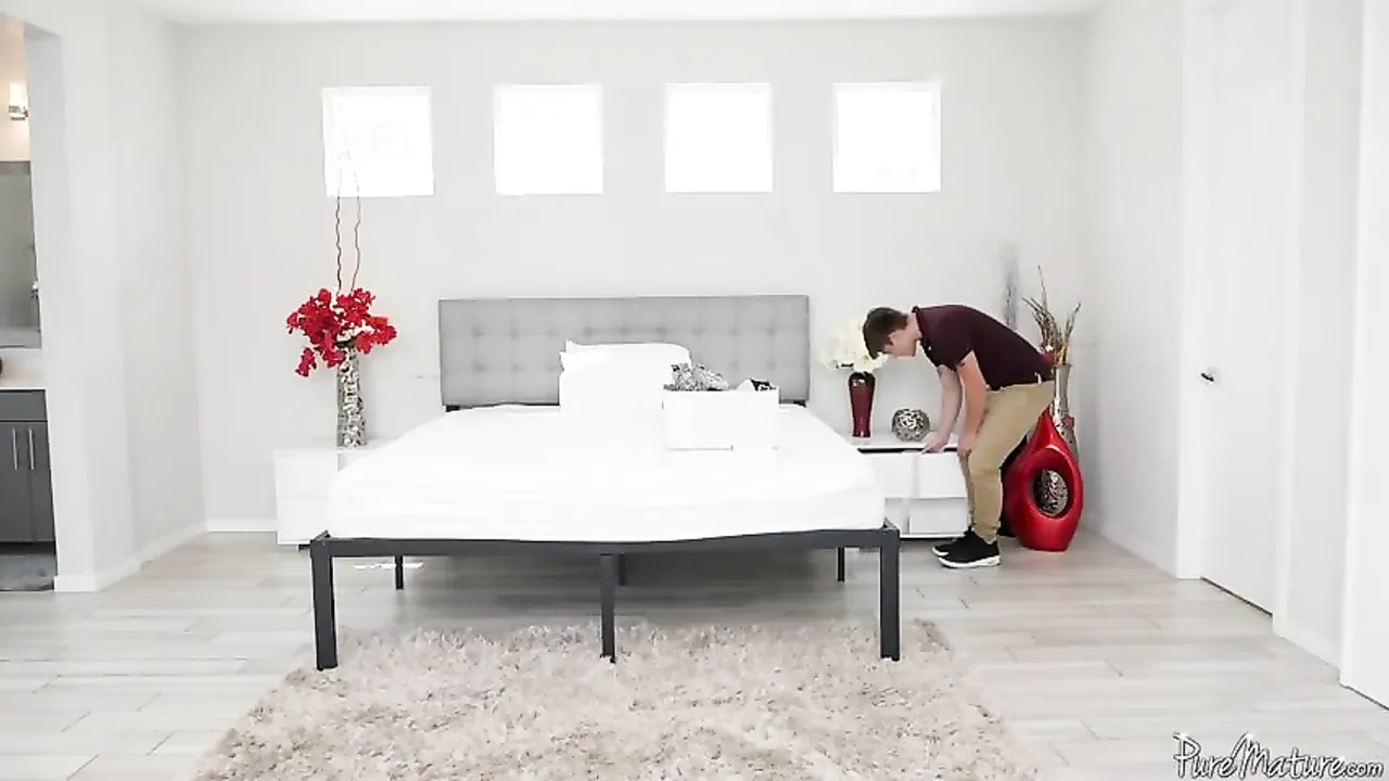 Ce jeune homme pervers d'une vingtaine d'années est obsédé par sa belle-mère. Il n'en peut plus. Il a besoin de matériel pour continuer à se masturber, alors il se faufile dans sa chambre pour chercher de la lingerie dans ses tiroirs. Mais il est surpris de trouver un énorme gode… et la femme entre et le surprend… !!