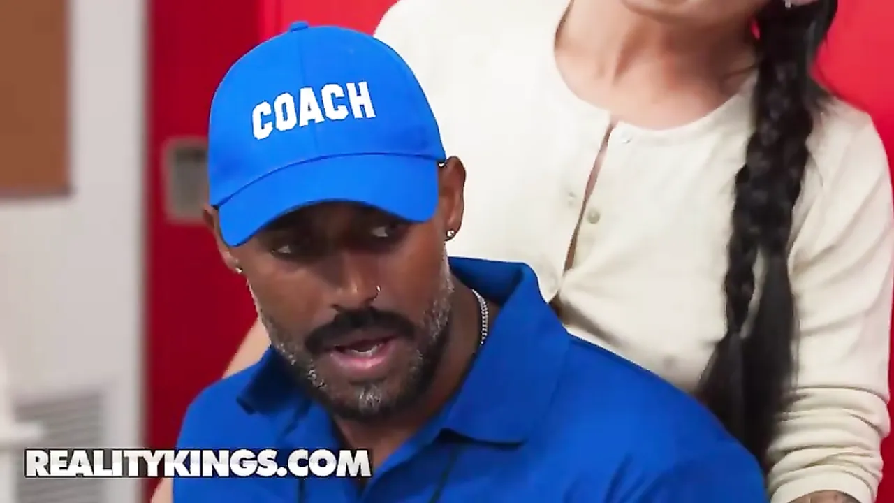 Che sgualdrina si è rivelata Evelin Stone, amici miei. Approfitta del fatto di essere la capo cheerleader per intrufolarsi nello spogliatoio maschile con l'intenzione di fare sesso con l'allenatore della squadra di football, che è un ragazzo nero muscoloso e che deve avere il pene grosso e molto duro, hehe, ma ovviamente, chi direbbe di no a fare sesso con una studentessa viziosa come Evelin Stone?