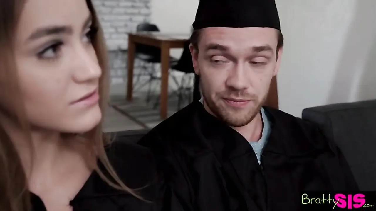 Este tio no olvida la promesa que le hizo su hermanastra hace tiempo. Le confirmo que si era capaz de graduarse sin repetir curso le haria una paja. Y parece que le cuesta hacerlo pero una vez tiene la polla en la mano se calienta tanto que se deja hasta follar