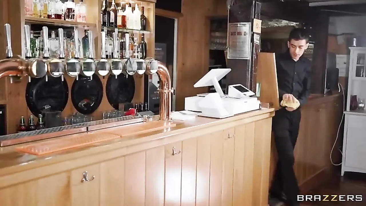 Mamá abre las piernas para que ese joven camarero la penetre el coño