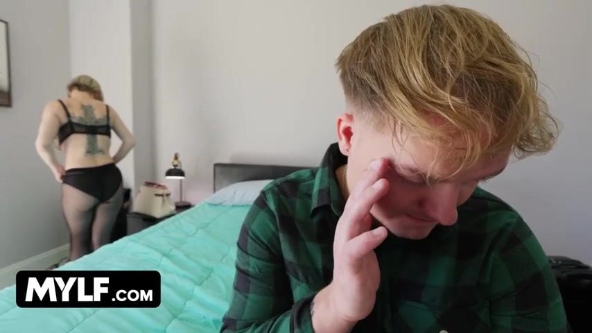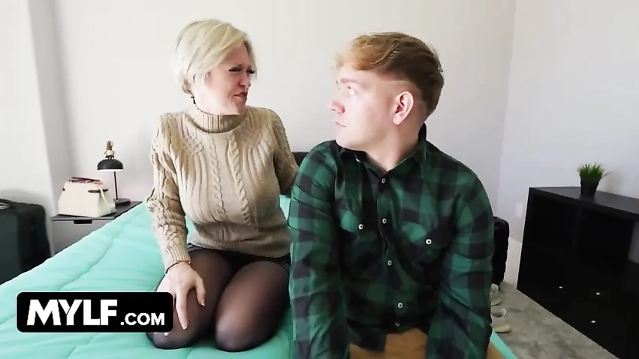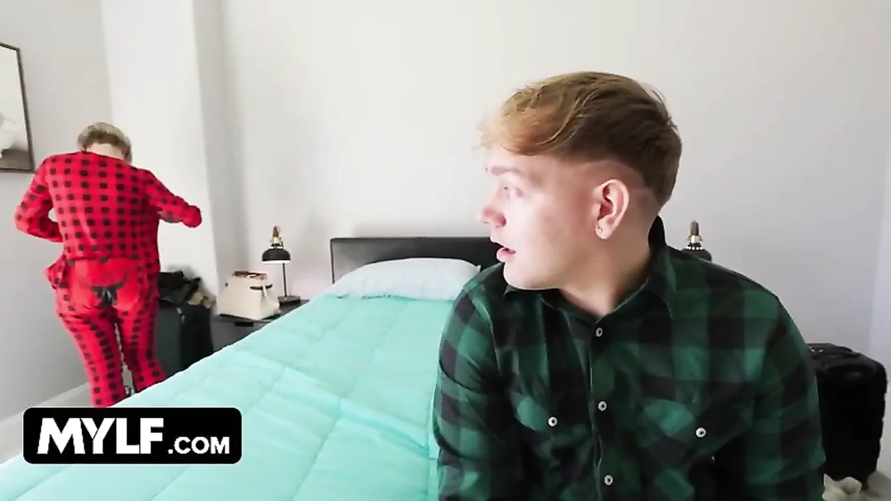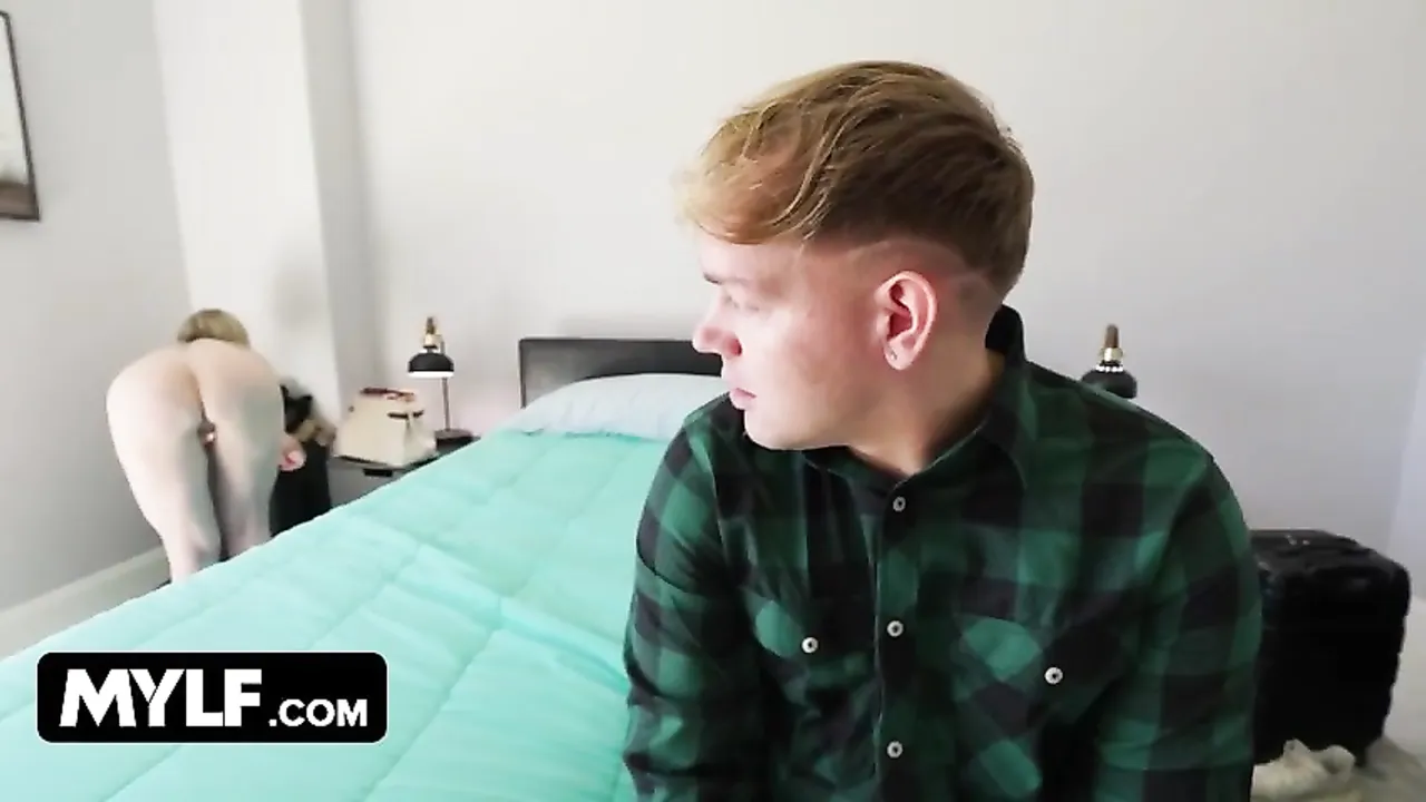 Este pajero universitario tiene que dormir con su madrastra ya que solamente han reservado una habitación de hotel. A priori puede parecer normal pero para el chico es una situación violenta. La señora está buenisima y no deja de exhibirse delante suya. Parece que si el chico le clavara la polla a ella no le importaria ... !!