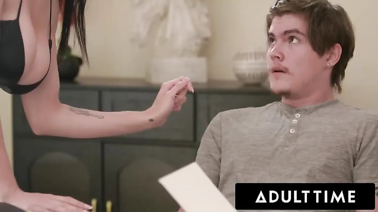 Este jovem universitário, na casa dos vinte anos, é muito sortudo. Seus pais contrataram uma professora particular para ajudá-lo com as matérias mais difíceis. A mulher é deslumbrante, com seios incríveis e uma minissaia de tirar o fôlego. E parece ter uma incrível tara por pênis...!!