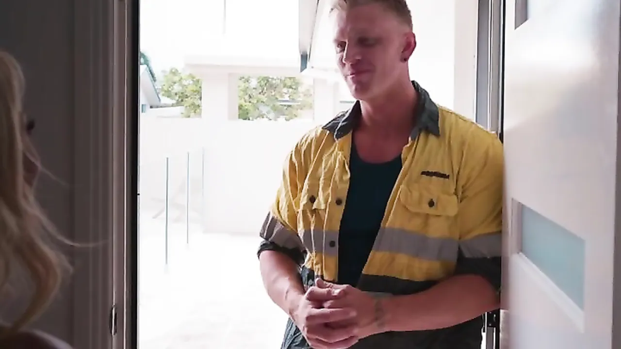 Rubia infiel se folla al electricista mientras su pobre novio está trabajando