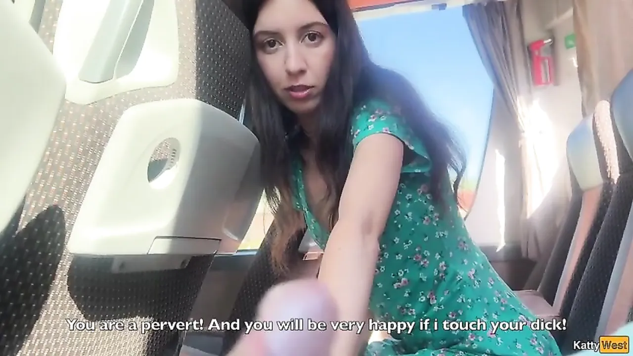 Esta guapa chica morena está a punto de experimentar algo super morboso. Un desconocido se saca la polla junto a ella en la última fila del autobus donde viajan. La chica no puede dejar de mirar ... medio escandalizada pero con muchas ganas de acercarse y ayudarle con la paja ...